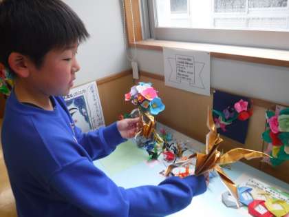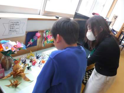 5月15日(月)得意を生かして 公開日 2023/05/15 更新日 2023/05/15 メール用カテゴリ 放送室前には、今、折り紙コーナーがあります。 折り紙で作ったすてきな作品が置かれています。 休み時間には、たくさんの子供たちがギャラリーとなり、作品を鑑賞しています。 これからも得意を生かして、自分らしさを輝かせてください。