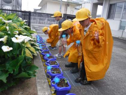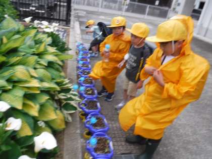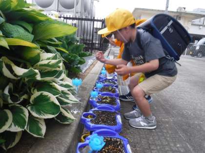 5月19日(金)1年生 アサガオの芽が出てきたよ