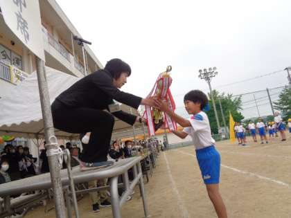 今年度の運動会は、総合優勝赤団、応援最優秀賞は青団でした。