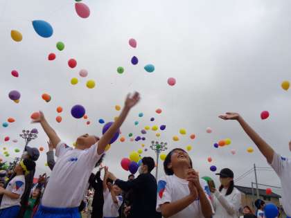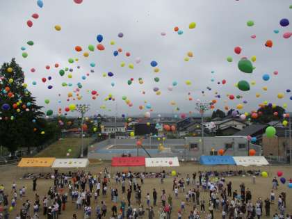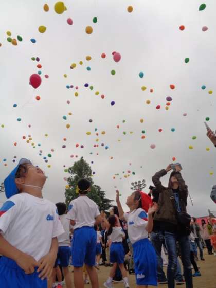 「楽しかった」「空と風船が綺麗だね」と150周年を笑顔でお祝いしました。