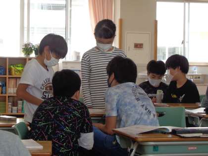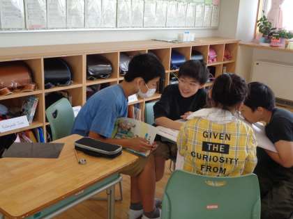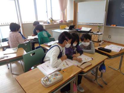 道徳科の学習では、頼み事をされたときの断り方についてグループで考えました。自分の気持ちを正直に伝えつつ、お互いが納得するためには、相手を気遣う一言「ナイスリターン」が大切であると考え、自分たちが考えた断り方で断る練習を行いました。練習や発表を通して、日頃の会話も「ナイスリターン」を意識したいという思いをもっていました。