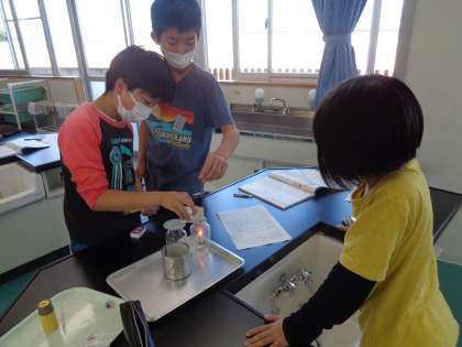 理科の学習では、ろうそくを燃やす前の空気と燃やした後の空気の変化について考えました。酸素センサーや気体検知管、石灰水等を使用して、空気中の酸素や二酸化炭素の量を調べました。どのグループも出際よく実験を行っていました。