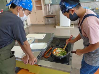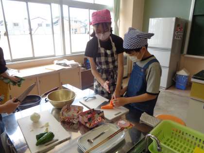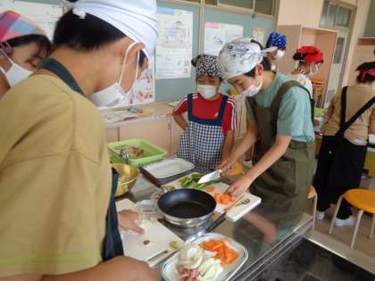 材料の大きさを揃えて切ったり、火加減に気を付けたりしながら調理しました。