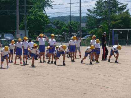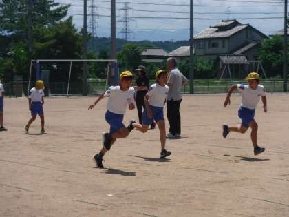 5・6年生は体育科で、スタート時の構えを学習しました。