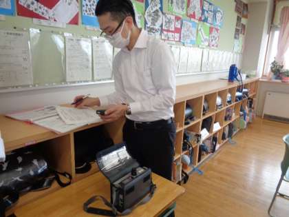 学校薬剤師の門嶋先生に環境衛生検査をしていただきました。子供たちが快適な環境で学習ができるよう、照明や気温等、環境整備をしています。