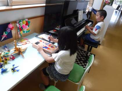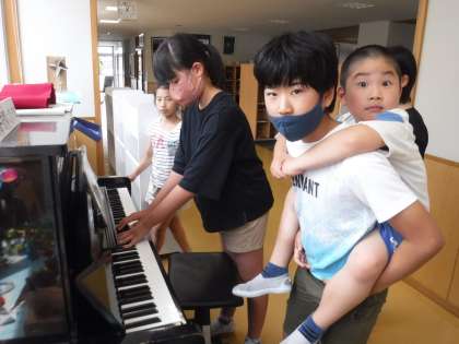 ピアノを弾くお友達に聴いているお友達。