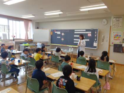 「たてみがき」と「よこみがき」をして、歯をピカピカにしました。