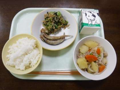 今日は、カルシウムがたっぷりの食材、ししゃもや小松菜、切り干し大根をよく噛んでいただきました。身体によい食材をバランスよく摂取していきましょう。