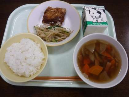 「かみかみ献立」の今日は、茎わかめや根菜など、歯ごたえのある食材、よく噛んで食べる食材が入っていました。
