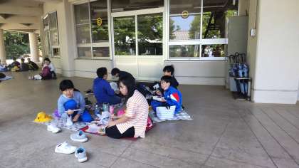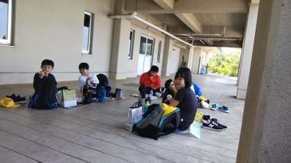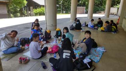 おいしくお昼ごはんを食べています。午後はワイルド遊びです。