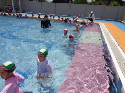 今年度の水泳運動の学習が始まりました。天気がよく、気持ちよくプールに入れました。中学年では、もぐる浮くことや浮いて進むことが目当てです。自分の目標に向かって、泳力が伸ばせるようにがんばっていきます。