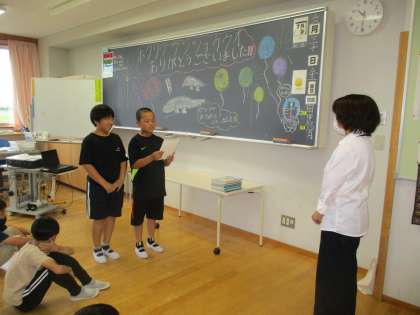 返却にあたってお別れ会を開きました。名残は尽きませんが、5年生が育てたサンショウウオが呉羽の山で元気に育ちますように…。