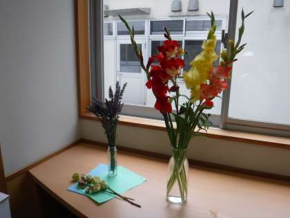 直線的で清々しく咲くグラジオラスにしばし見とれました。
