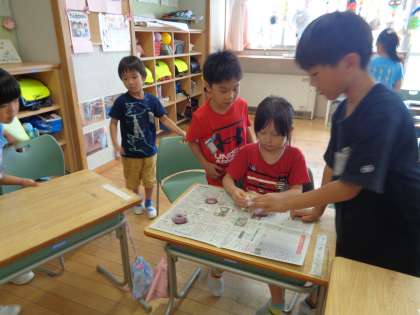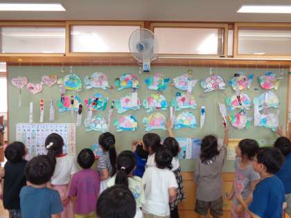 アサガオの染め出しやデカルコマニーをして、風鈴を作りました。