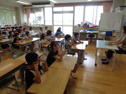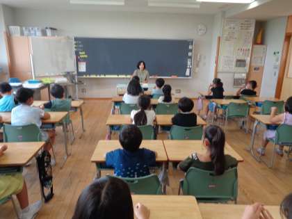1学期最後の読み聞かせでした。2冊の読み聞かせを真剣に聞く姿が見られました。2冊目の「きょだいなきょだいな」では、巨大になったせっけんやトイレットペーパーが出てくる度に、笑いが起こっていました。