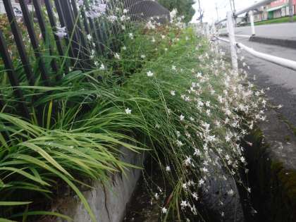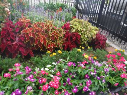 春に植えた花の株が大きく生長し、鮮やかな色の花を咲かせています。