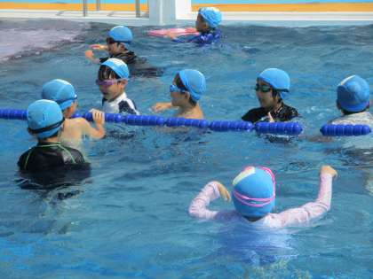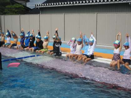 浮く、もぐる遊びをしました。水に慣れてきた子供たちです。