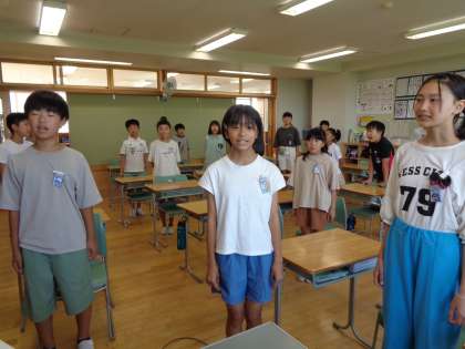 7月24日(月)6年生 1学期 終業式 公開日 2023/07/24 更新日 2023/07/24 6年生 74日間の1学期が終わりました。4月から最高学年として「一致団結・一所懸命」取り組んできた6年生です。 終業式後、代表児童が体験発表を行い、国語の暗唱や児童会活動等、自分で考えて取り組んだことについて発表しました。夏休みも自分で考えて生活をつくっていきましょう。すてきな夏休みを!