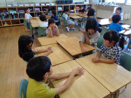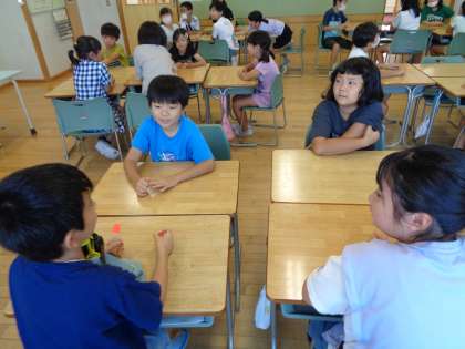 夏休みの思い出をサイコロトークで友達と伝え合いました。思い出いっぱいの楽しい夏休みだったようで、楽しそうに話していました。