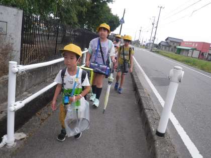 9月5日(火)思いっきり学習しよう! 公開日 2023/09/05 更新日 2023/09/05 メール用カテゴリ 今朝の空は、厚い雲に覆われていましたが、蒸し暑く、子供たちは汗を流しながら登校しました。 鍵盤ハーモニカ、水彩道具、書道セットを手にしたり、虫かごを抱えたりして一生懸命歩いてきました。今日の学習内容が目に見えるようです。 今日は持ってきた学習用具を使って、思いっきり学習しましょう! 本日も子供たちを見守ってくださった地域の方々、暑い中、どうもありがとうございました。