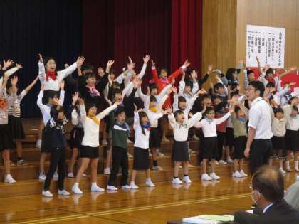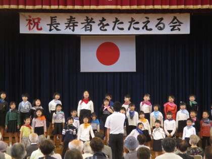 長寿者をたたえる会に出演しました。これまでの練習の成果を十分に発揮することができ、笑顔いっぱいで歌ったり踊ったりしました。長寿者の皆さんに笑顔と元気を届けることができました。
