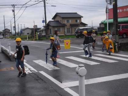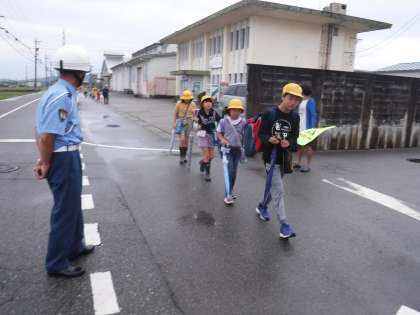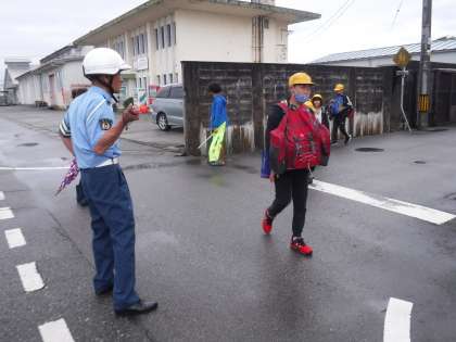 秋の全国交通安全運動7日目の今日も、地域の方々、保護者の皆さんに見守られながら子供たちが登校しました。