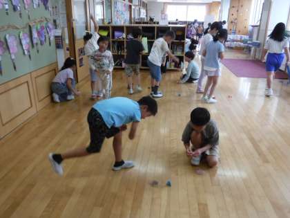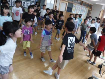 9月28日(木)楽しく体力つくり 公開日 2023/09/29 更新日 2023/09/29 メール用カテゴリ いきいきタイムの時間です。 今日は雨天バージョンの体力つくりでした。 ケンパー、めんこ、ダンス等、なかよし班の友達と楽しく行いました。