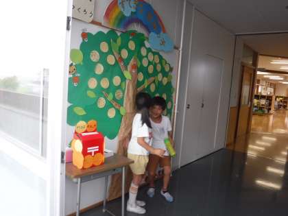 友達のすてきなところ、うれしかったこと、友達へのありがとうの梨が貼られています。