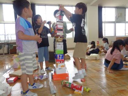 9月28日(木) 1年生 算数科 公開日 2023/09/29 更新日 2023/09/29 1年生 子供たちは家からもってきた材料を使って、思い切り学習していました。箱のご用意、ありがとうございました。