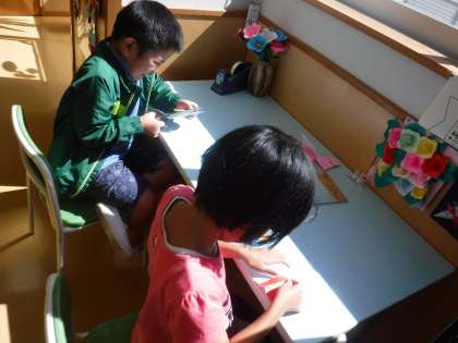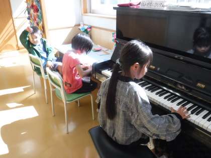 10月3日(火)輝いていますね 公開日 2023/10/03 更新日 2023/10/03 メール用カテゴリ 廊下は日だまりになっていて、子供たちに暖かい日射しが降り注いでいます。 折り紙、ピアノ・・・ 夢中な姿が輝いています!