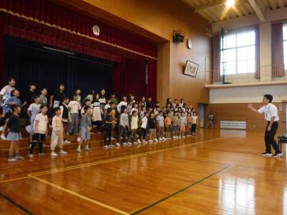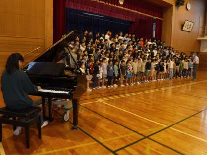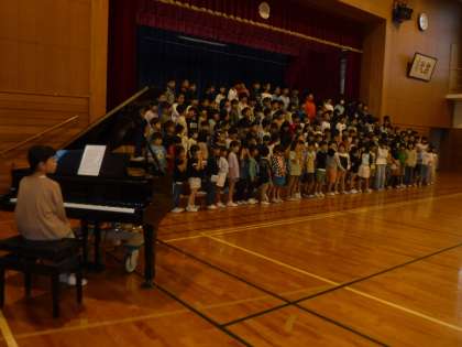 10月5日(木)元気な歌声が響きました 公開日 2023/10/05 更新日 2023/10/05 メール用カテゴリ 今朝のさわやかタイムで、明日、区域連合音楽会で出場する2、3年生の校内発表会を行いました。上級生から温かいエールが贈られました。2、3年生のみなさん、明日は笑顔とすてきなメロディーを発表してきてくださいね。 1時間目には、学習発表会で全校合唱する曲を練習しました。 学習発表会では、心を込めてお届けしたいと思います。