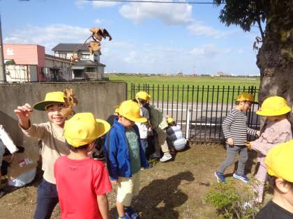 「あきをたのしもう」の学習では、「秋見つけ」を行いました。外へ出で、どんぐりや松ぼっくり、枯れ葉等、秋を見つけられました。