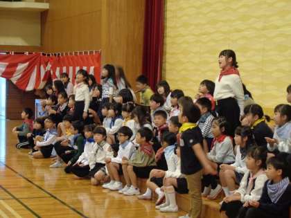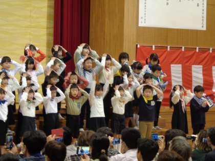 今日の学習発表会ではみんな笑顔で、元気いっぱい歌うことができました。敬老会、区域連合音楽会、校内発表会、学習発表会と大きな舞台で4回も歌たったこの経験は、子供たちの素敵な財産になったと思います。保護者のみなさま、衣装の準備等、本当にありがとうございました。