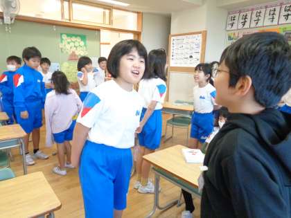 「同じ!」「へ〜」等が聞こえ、友達のことをもっと知って楽しい時間になりました。