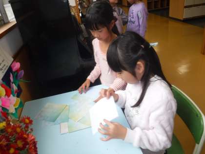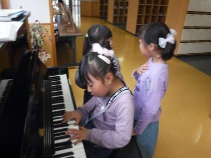 廊下ピアノを奏でたり、折り紙をしたりする姿がありました。