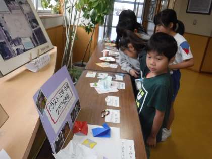 イラスト・工作・手芸クラブの作品を児童玄関前に展示しています。
