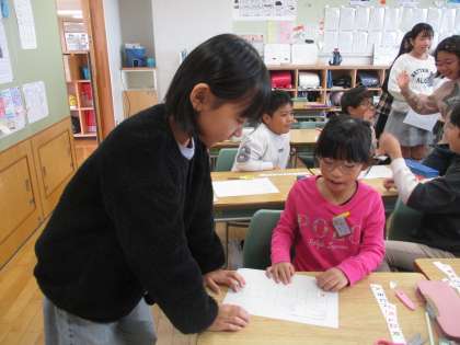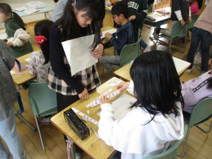 外国語科でアルファベットを学習しました。友達と英語でやりとりしながら自分の名前に入っているアルファベットを集めました。アルファベットを覚えることができました。