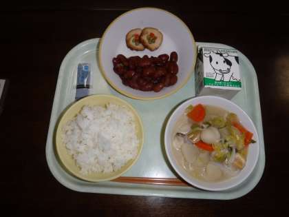 今日の給食 公開日 2023/11/20 更新日 2023/11/20 本日の給食 今日の給食の献立は、 ごはん 牛乳 野菜の肉巻き 煮豆 大漁鍋 のりの佃煮 でした。 今日の「大漁鍋」には、野菜とスケソウダラやすり身がたっぷり入っていました。魚からの出汁が効いていてとても濃厚でした。寒い日に身体が温まる汁物でした。 明日の給食もお楽しみに。