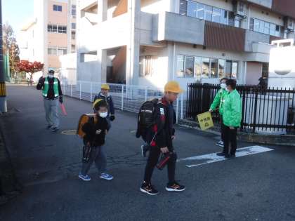 本日も地域の方々、保護者のみなさんに見守られて子供たちが登校しました。