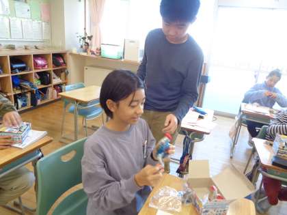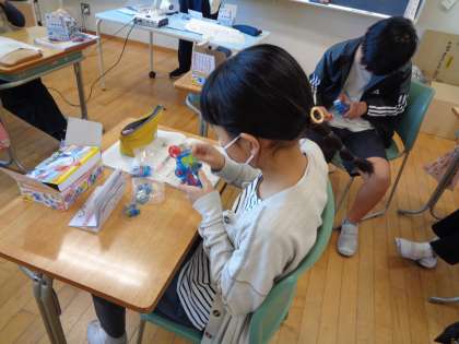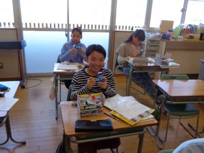 今日は手回し発電機を使い、回す手応えや速さを変え、光り方を比較する実験を行いました。