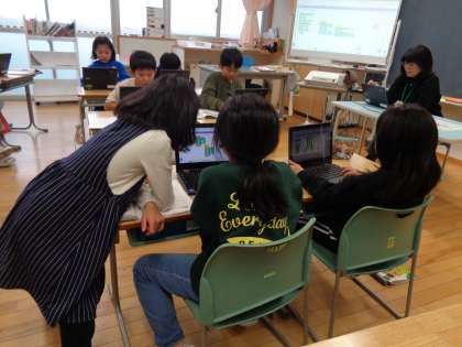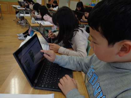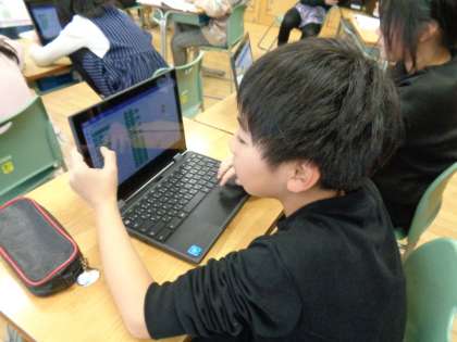 イラストをジャンプさせたり、走らせたりしました。また、音楽も作りました。子供たちの発想力に驚かされてばかりの時間になりました。