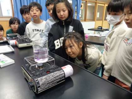 理科「もののあたたまり方」では、実験を通して「金属」「空気」「水」がどのようにあたたまるのかを学んできました。予想を立てて、話合い、実験で確かめることが定着してきました。「へ〜」「やっぱりね」など言いながら、実験結果を受け止めていました。