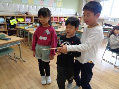 2年生さんから招待された「おもちゃまつり」がありました。1年生は、「楽しかった」「作ってみたい」と言っていました。