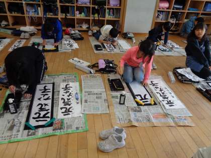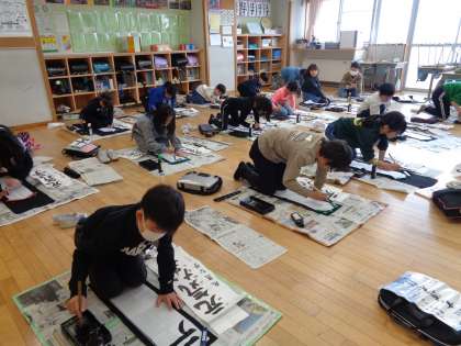 準備も片付けも早くなり、落ち着いて字を書く子供が増えました。冬休み中も練習を続け、のびのびとした字を書初大会で披露できるように、がんばってほしいと思います。