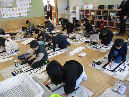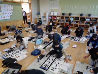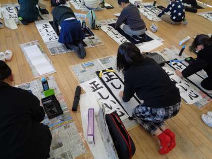 始業式の後、校内書初大会を行いました。練習を重ねてきた「正しい心」を集中して書きました。2学期中、冬休み中にがんばってきたことを意識して、力強く書くことができました。
