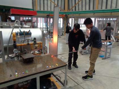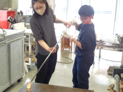 自分で色や形、模様を選び、ガラス作家のみなさんにご指導いただきながら真剣に取り組んでいました。