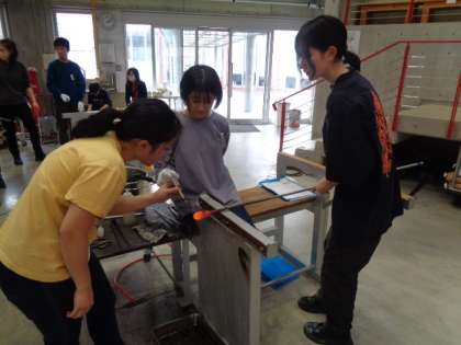 6年生が卒業制作のペーパーウェイトをつくりに、富山ガラス工房へ行きました。