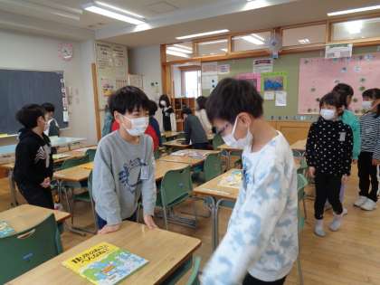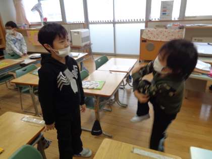 1月24日(水) 1年生 ふれあいタイム 公開日 2024/01/24 更新日 2024/01/24 1年生 「ふわふわじゃんけん」をしました。「どうしたの?大丈夫?」と心配した気持ちを込めて優しい言い方をしていました。