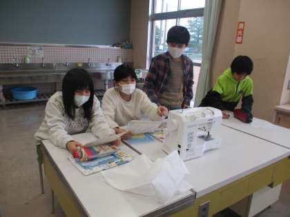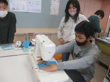 家庭科でランチョンマット作成のためにミシンを使う学習が始まりました。