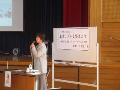 新井千賀子先生をお招きし、睡眠の重要性、ネット・ゲームの影響から生活リズムの大切さについて教えていただきました。